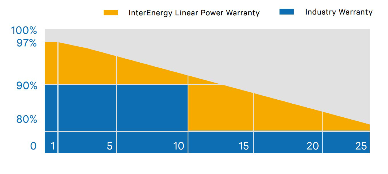 Modulele monocristaline InterEnergy sunt fabricate folosind noi standarde si tehnologii industriale. Accentul se pune pe faptul că clientul trebuie sa primeasca un produs de calitate si valoare excelenta. De aceea, Inter Energy investeste constant in inovatii in domeniul energiei solare. Strategia globala a Inter Energy vizeaza implementarea celor mai eficiente module folosind cele mai bune tehnologii disponibile in prezent. In acest fel, investitorul va putea obtine o generare maxima de energie, mentinând in acelasi timp un pret rezonabil si favorabil. Echipa Inter Energy este increzatoare ca transformarea energiei solare in cea mai accesibila si mai ieftina sursa de electricitate va pune capat problemelor climatice de pe Pamant o data pentru totdeauna.